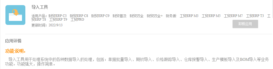 通过软件中【更多应用】安装【导入工具】插件,批量处理系统中各种数据导入问题。